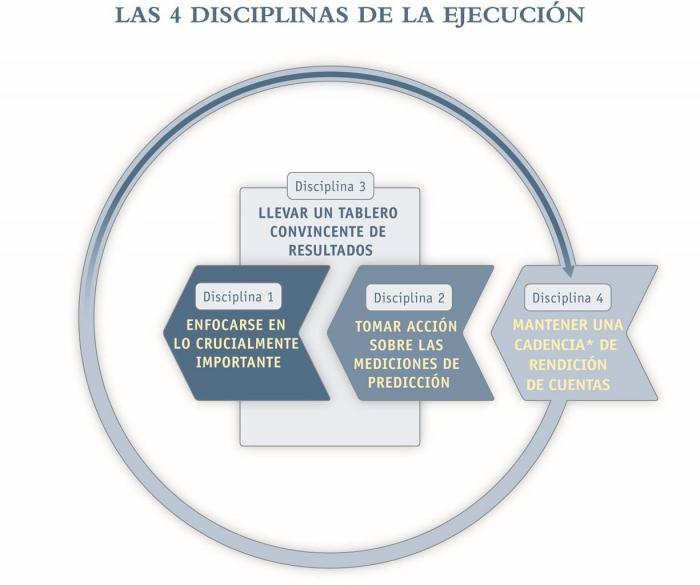 En FranklinCovey hemos estudiado intensamente el tema de la ejecución, durante la última década en miles de organizaciones en nivel mundial y hemos desarrollado un sistema humano que resuelva el dilema de le ejecución, lo hemos llamado: Las Cuatro Disciplinas de la Ejecución; un resumen de cada una de ellas se presentan a continuación: